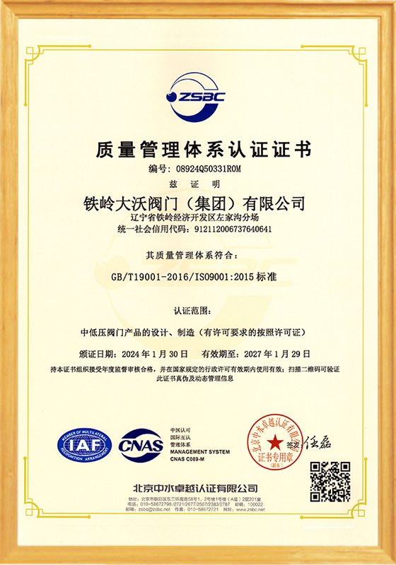 鐵嶺大沃閥門(集團)有限公司,是原鐵嶺閥門廠改制后,以原國有企業(yè)各領(lǐng)域的骨干精英為核心所組建的創(chuàng)新型企業(yè)。公司在傳承老“鐵閥”所積淀的“管理嚴格、質(zhì)量第一”精神的同時,將“以客戶為中心,市場為導向,科技創(chuàng)新為支撐”作為發(fā)展理念;將“修為礪器,誠信匠心”作為核心價值觀。在近十年的發(fā)展歷程中,鐵嶺大沃人通過不懈地探索和創(chuàng)新,逐步形成了獨特的經(jīng)營模式及核心競爭力。成為遼寧省企業(yè)廳命名的省級創(chuàng)新型企業(yè);成為通過ISO 9001質(zhì)量管理體系、ISO14001環(huán)境管理體系和ISO 18001職業(yè)健康安全管理體系認證,以及特種設(shè)備制造許可證認證......